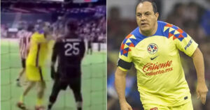 El exjugador del América, Cuauhtémoc Blanco, propinó un golpe al portero de Chivas, durante un partido de leyendas