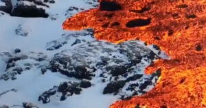 VIDEO: Volcanes expulsan lava y sepultan la nieve en Islandia