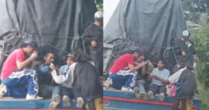 Los tres jóvenes le devolvieron una cangurera y un gorro a dos personas que viajaban de forma irregular en un camión, luego de que un conductor los grabara y confrontara