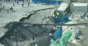 Un socavón sorprendió a transeúntes en Shanghai, China, al abrirse en una zona de obras del metro; no hubo heridos y autoridades acordonaron el área.