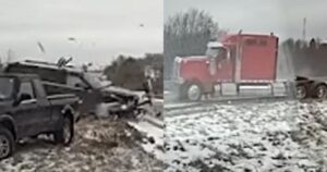 Una cámara instalada en una patrulla en Ohio captó dos choques en un minuto: un camión derrapó en tramo helado y un SUV impactó otra camioneta.