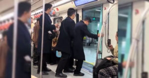 Una pareja de trabajadores del tren ligero chino repararon en tiempo récord las puertas de un convoy