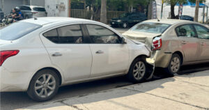 Dos personas resultaron lesionadas en este impacto con proyección, ocurrido en el cruce de la calle 16 con César López de Lara.