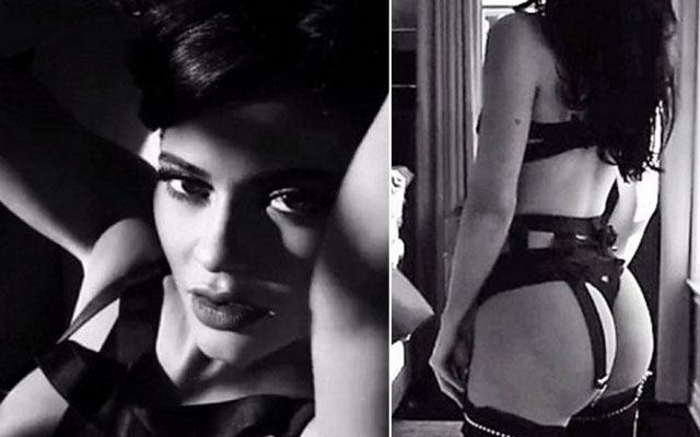 La hermana menor de las Kardashian aparece con lencería inspirada en el bondage, por lo que se puede ver gran parte de su trasero y su figura.