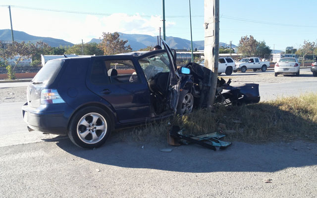 Testigos aseguran que el chofer salió herido y que éste se retiró. Manejaba a exceso de velocidad y se va contra un poste metálico de la CFE