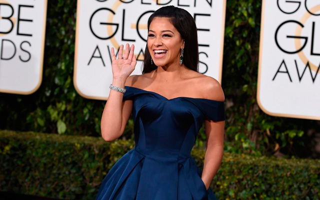 Gina Rodriguez, protagonista de la serie “Jane the Virgin” y nominada como Mejor Actriz, fue una de las primeras en desfilar
