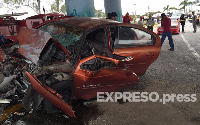 Se estima que se trasladaba a más de 100 km/hr en la Avenida Hidalgo, la unidad quedó semi destrozada en uno de los pilares del paso a desnivel del Aeropuerto