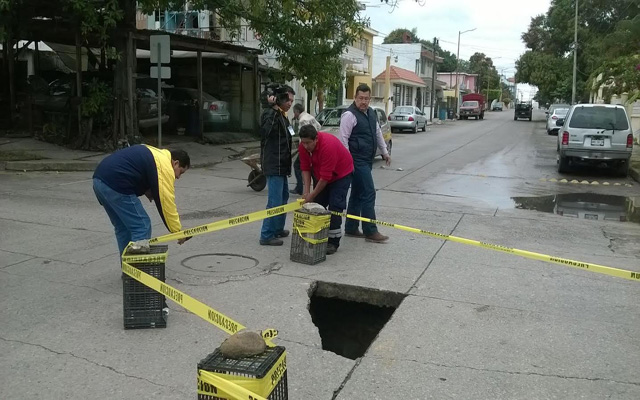 Un hundimiento de 3 metros de profundidad y 10 metros de largo se registró en el cruce de la calle Ramos Arizpe y Haiti en la colonia Primero de Mayo