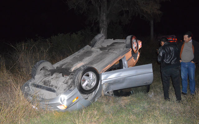 El chofer esquiva un coche al que no quiso chocar debido a que se le metió en su ruta. Se salen del camino y quedan llantas arriba. Cruz Roja los atendió