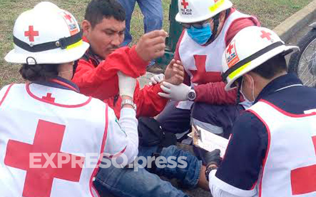 Disparado por los aires y con diversas lesiones en todo el cuerpo, terminó infortunado motociclista esta mañana