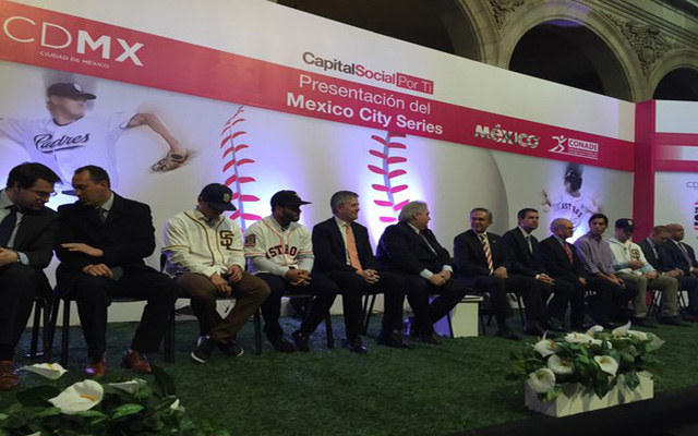El Jefe de Gobierno de la Ciudad de México, Miguel Ángel Mancera, hizo hoy la presentación oficial de la serie de Pretemporada de Ligas Mayores entre Padres de San Diego y Astros de Houston.