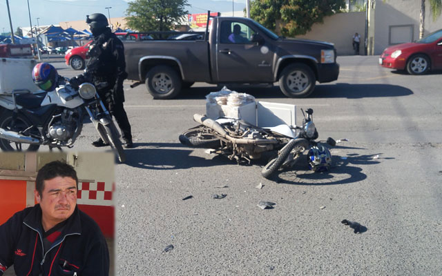 Se desplazaba en una motocicleta pero una camioneta se le atraviesa en el camino después de que su chofer intentó ganarle el paso en una vuelta repentina. Sufre