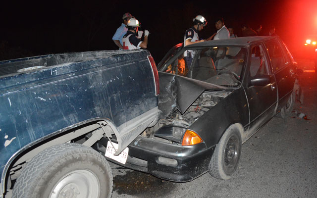 Joven choca sobre el acotamiento. Choca un sedán compacto, quien es prensado contra una camioneta. Cruz Roja acudió a atender a los afectados
