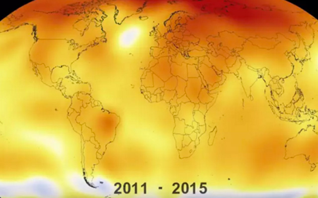 En el vídeo se puede apreciar con un código de color la evolución climática desde 1880 en periodos de cinco años