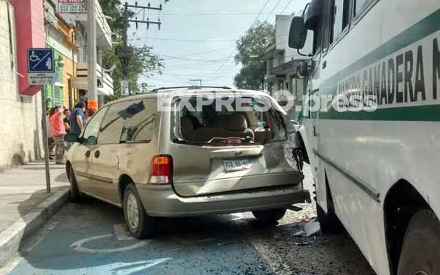 Choca autobús de Tampico con camioneta estacionada