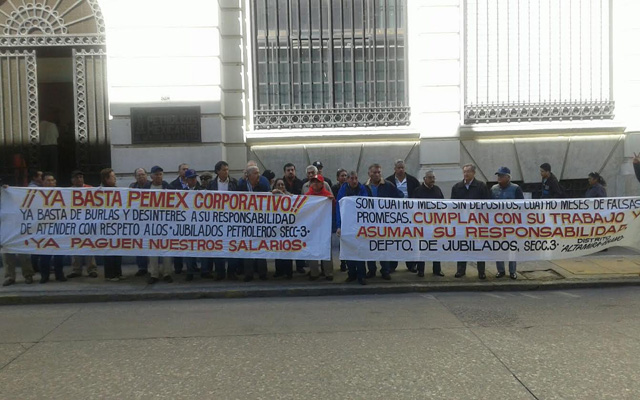 Jubilados de Pemex se manifiestan por falta de pago de pensión