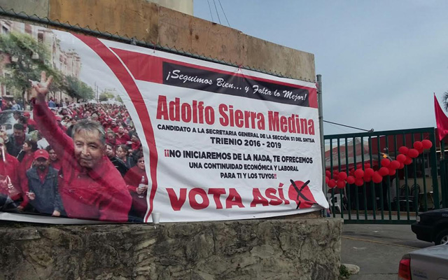 Por la planilla roja está Adolfo Sierra Medina, quien es el actual secretario general, y en la planilla azul Maribel González Arredondo
