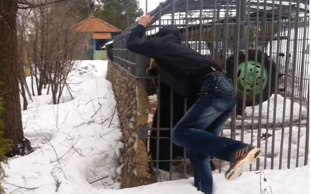 En él, se ve cómo un joven en estado de embriaguez se acerca a un oso enjaulado y comienza a molestarle.