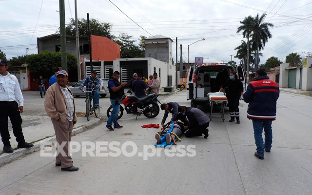 Una mujer resultó lesionada, luego de que la motocicleta en la que viajaba junto con su esposo chocara contra un vehículo