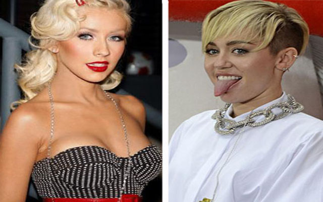Cyrus y Christina Aguilera juegan con sus lenguas