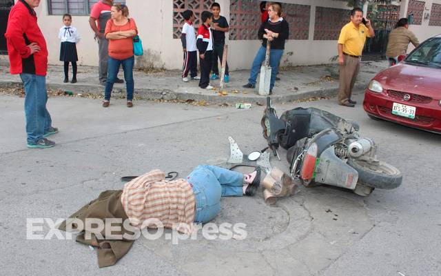 Mujer lesionada al chocar su moto