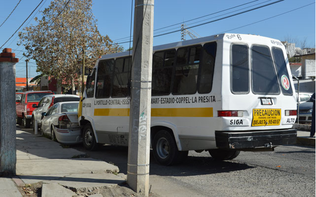 Chofer de una camioneta rebasa el límite de alto, le pega a un microbús que a su vez se proyecta contra dos carros estacionados. Hubo dos pasajeros golpeados