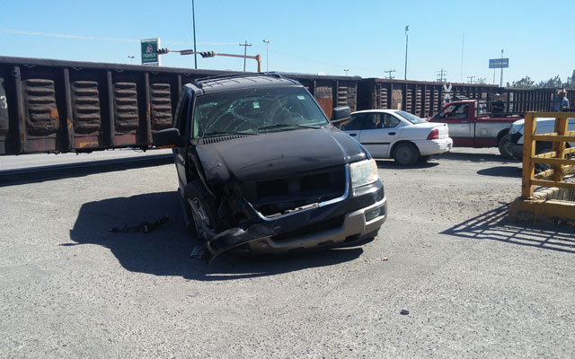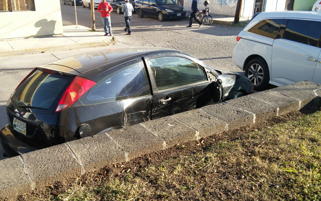 Omite un alto en un peligroso cruce y su coche compacto es embestido por una vagoneta que a su vez la manda contra la banqueta