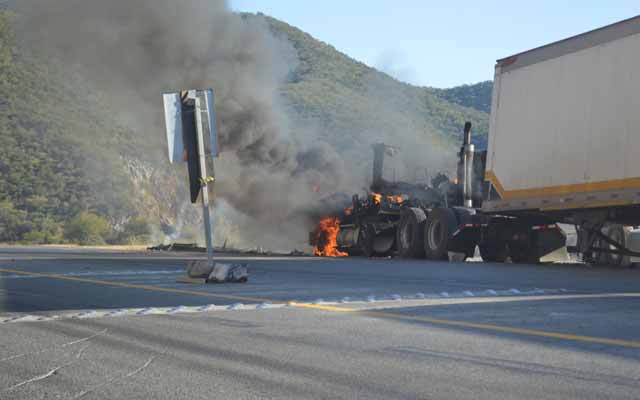 Al ir subiendo la sierra en la carretera, el camión comienza arder hasta consumirse el automotor