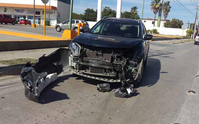 Ama de casa denuncia que un empleado iba viendo su celular mientras manejaba, omite un alto y ocasiona un aparatoso percance vial