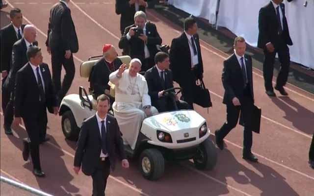 Papa llega al estadio Venustiano Carranza de Morelia