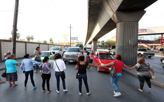 Unas 40 mujeres, se tomaron de las manos para obstruir el tráfico vehicular de la Av. Rodrigo Gómez, en sus dos sentidos