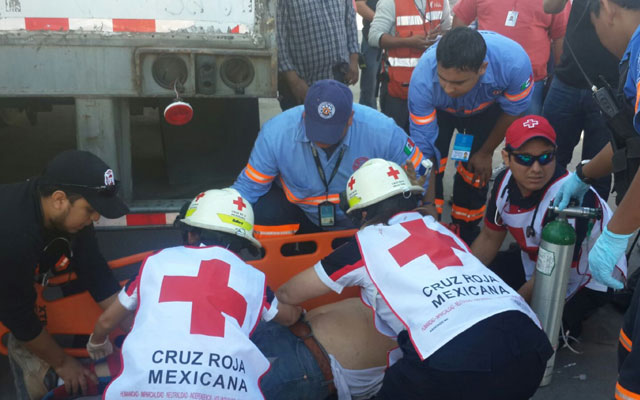 Un hombre se hallaba realizando las reparaciones a una caja de los camiones y otro tráiler se echó de reversa para prensarlo y matarlo