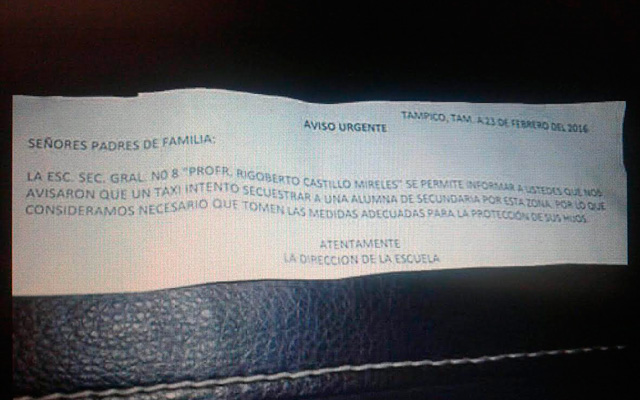 Emiten alerta en secundaria de Tampico por intento de secuestro