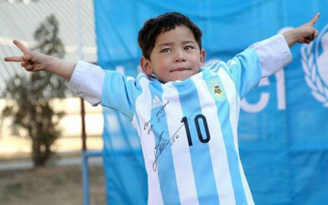 Murtaza Ahmadi, de cinco años, recibió las camisetas del Barcelona y de la selección Albiceleste de parte de Messi