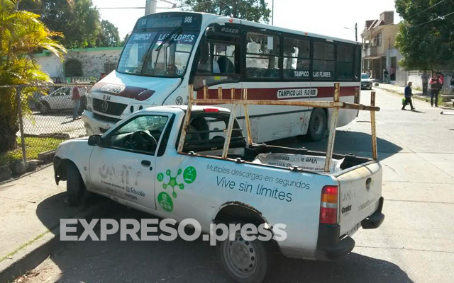 Autobús arrastra camioneta; 5 heridos