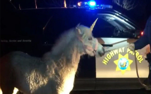 La patrulla de caminos de California recibió varios informes insólitos pero coincidentes: un unicornio diminuto se paseaba por una carretera.