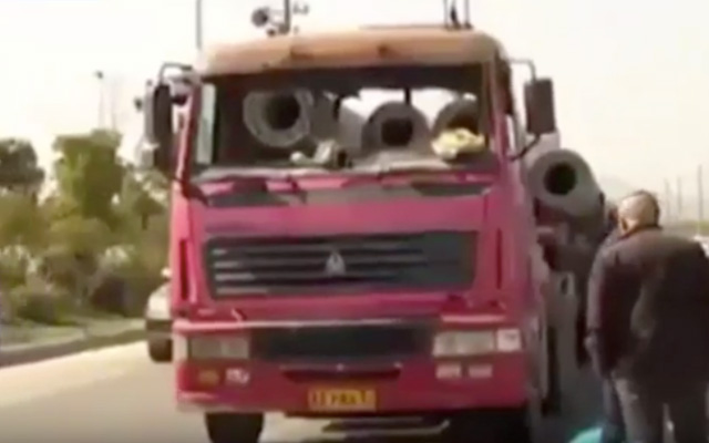 Estas terribles imágenes muestran como el conductor de un camión muere aplastado por grandes tubos de cemento