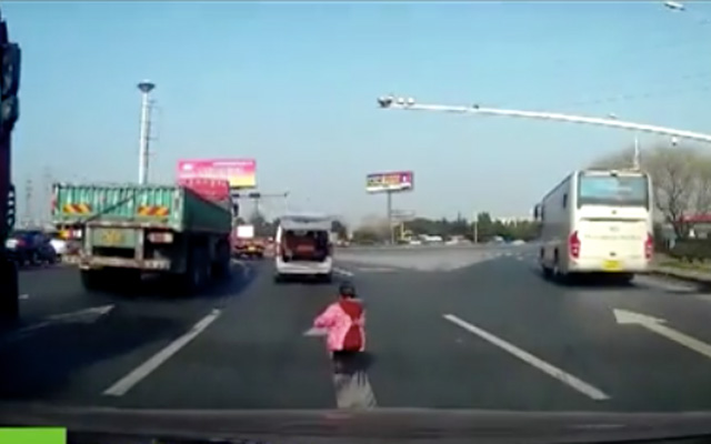 El pequeño fue rescatado por el conductor que venía por detrás y que grabó todo lo sucedido
