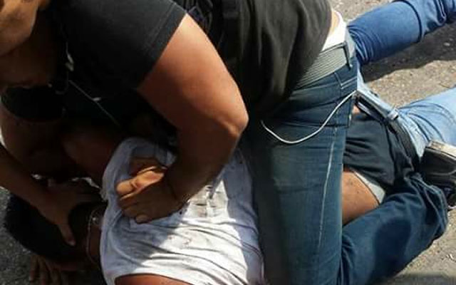 Vecinos de una colonia al enterarse que habían golpeado a una cajera de una tienda de conveniencia los persiguen y al alcanzarlos les dan una golpiza