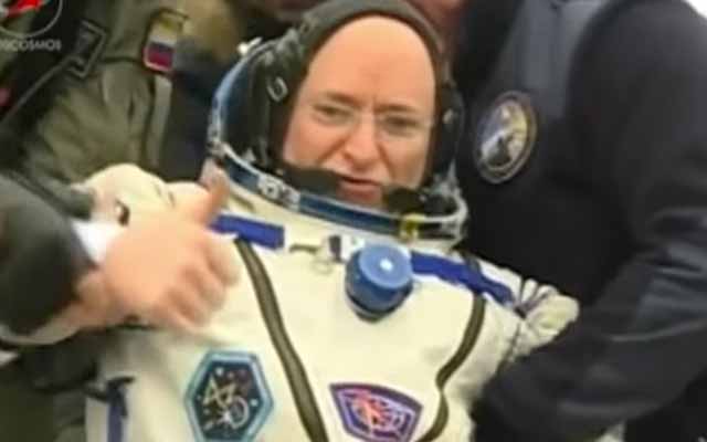 La nave Soyuz, que transportaba a Kelly y los rusos Kornienko y Sergey Volkov aterrizó en la estepa cercana a la ciudad Zhezkazgan a las 22:26 horas, tiempo de México