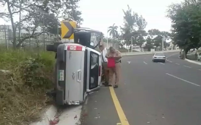 Aparatoso choque se registró en el tramo carretero Mante-El Abra, en el que se vieron involucrados una camioneta, un Jetta y un autobús que trasladaba a estudiantes del Tec Mante