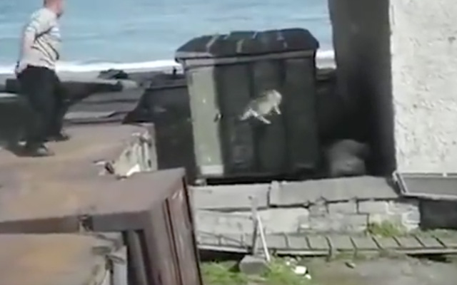 Hombre le arroja un perro vivo a un oso polar (Video)