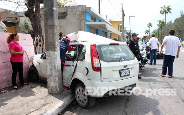 Frente a la Unidad Deportiva de Tampico un conductor perdió el control luego de caer sobre un vado y treparse al camellón del bulevar López Mateos, se proyectó contra un poste