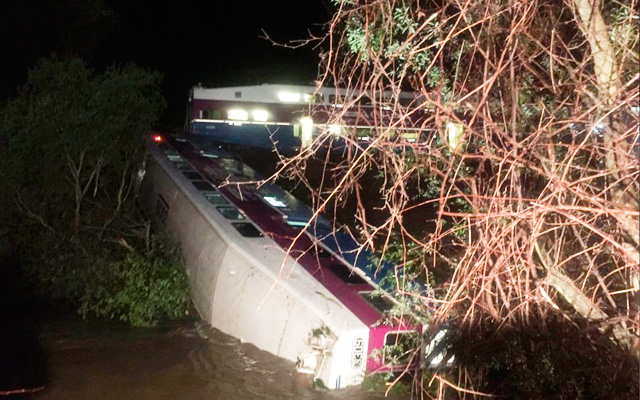 Un tren de pasajeros descarriló debido a un árbol caído en las vías al norte de California, EUA, dejando un saldo de 9 personas lesionadas