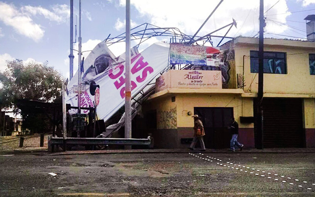 Según reportes de Protección Civil del Estado, en Uruapan, Zamora y Zitácuaro también hay caídas de espectaculares a causa de los ventarrones