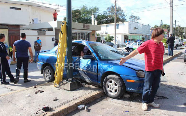 Brutal choque entre una camioneta y un auto compacto se registró en el cruce de las calles Faja de Oro esquina con México de la colonia Petrolera