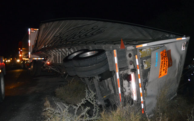 Al llegar a una zona de descanso el chofer trata de estacionarse pero no se percata de la existencia de una zanja
