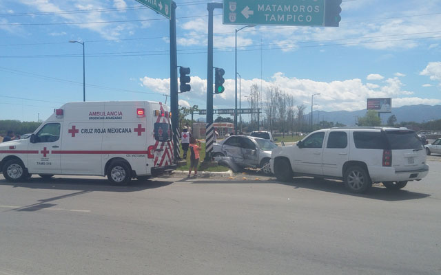 jovencita sale golpeada, ya que una camioneta de seguridad la choca y proyecta contra a base del semáforo. Aparentemente la dama se pasó el alto