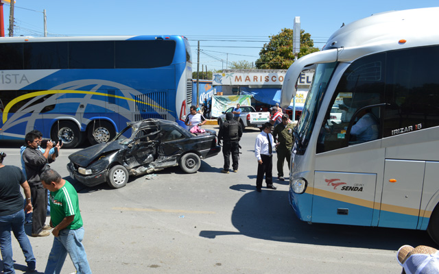 Conductora se le atraviesa al camión de linea foránea. Al impacto el vehículo lo arrastra mas de 60 metros. La mujer es reportada como grave