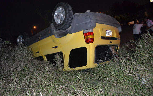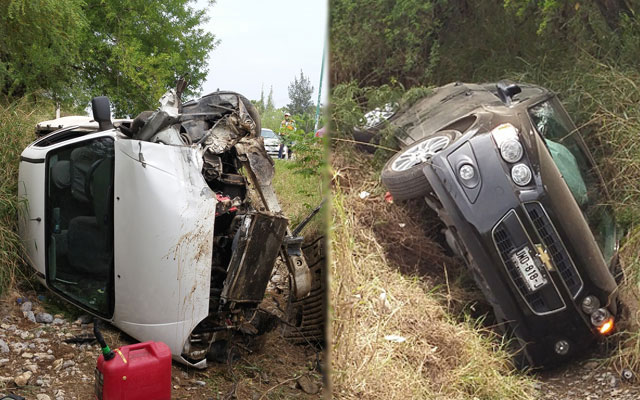 Par de automovilistas burlaron la muerte. Uno de ellos pierde el control de la unidad y cruza el camellón central para estrellarse en el otro carril con un coche. Ambos se van a un dren